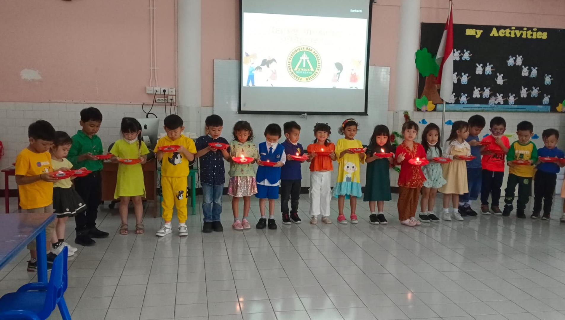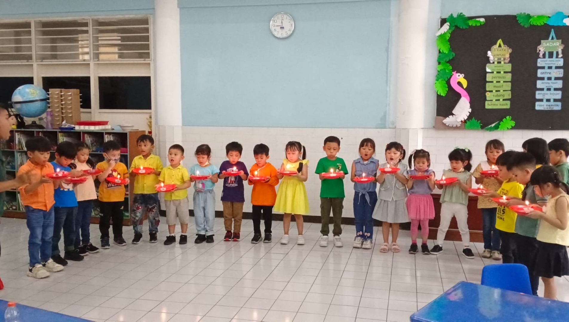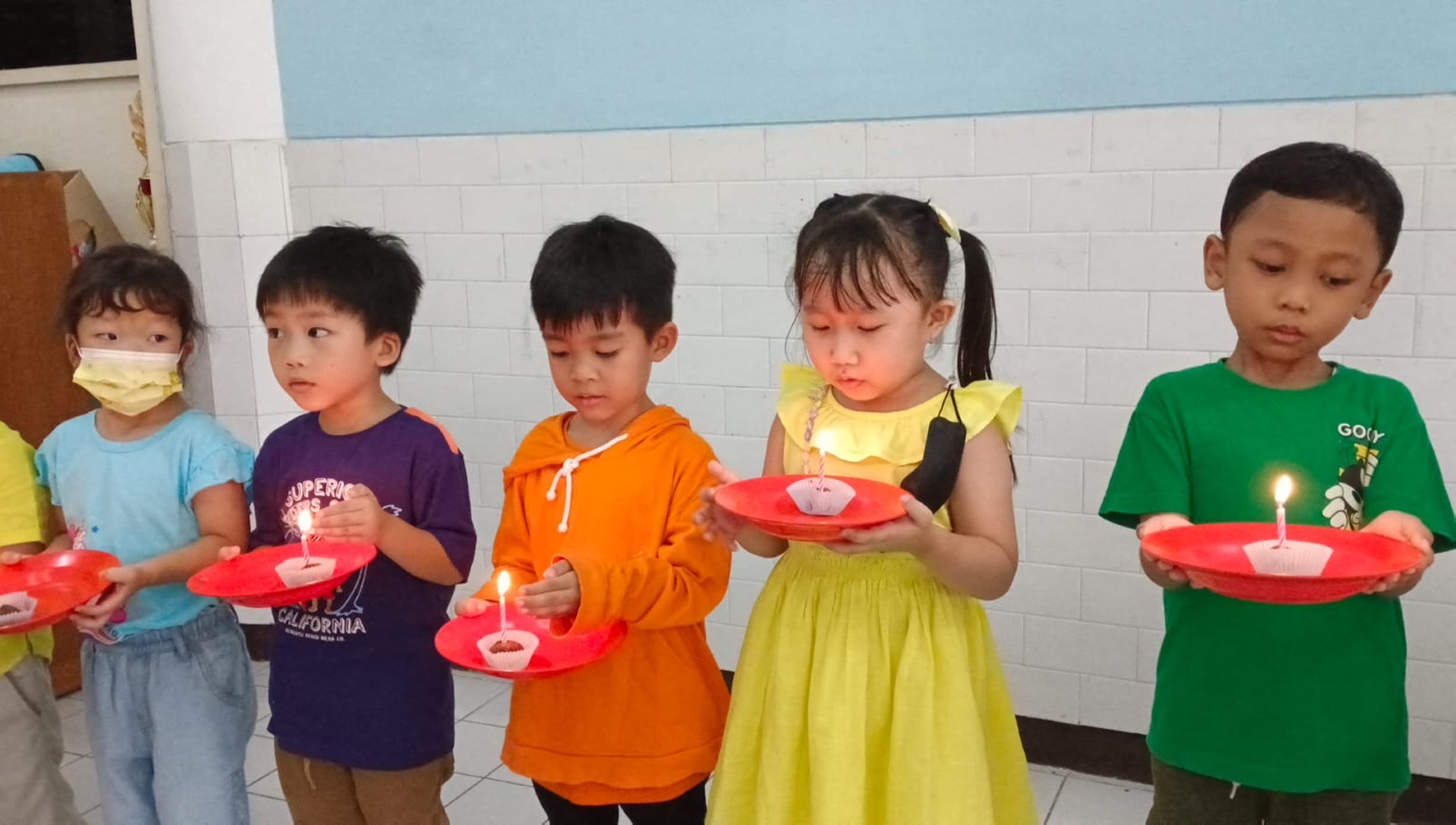 Sebelum acara perayaan ulang tahun PPPK Petra, kami menyanyikan pujian sebagai ucapan syukur kami terhadap Tuhan atas anugerah, kebaikan dan penyertaan Tuhan, PPPK Petra tetap ada hingga saat ini. Renungan singkat pun juga disampaikan pada kami. Setelah itu, kami melihat video tentang ucapan warga sekolah, mulai dari para guru, karyawan, hingga perwakilan orang tua dan siswa. Acara pun berlanjut dengan menyanyikan lagu “Ulang Tahun” dan meniup lilin bersama dengan yang lain.