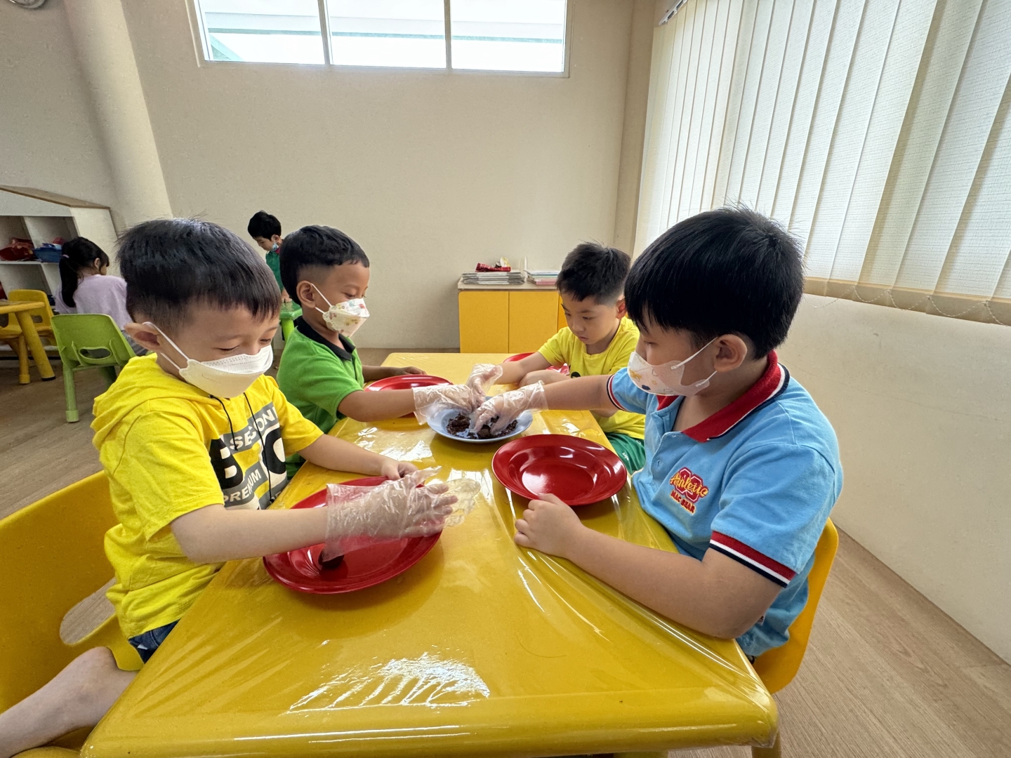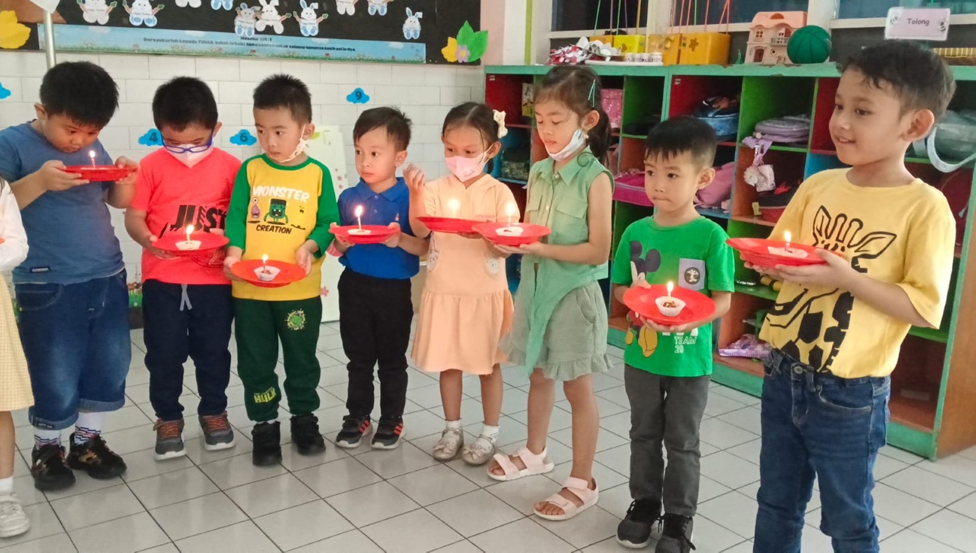 Tidak hanya itu, saat kembali ke kelas kami sudah melihat beberapa persiapan peralatan dan perlengkapan untuk “cooking”. Perayaan kali ini, kami ikut terlibat dalam membuat bola coklat dengan taburan meses. Kami diajarkan langkah demi langkah untuk membuat kue bola coklat meses ini. Selain membuat dan merasakan, kami juga dapat membagikannya ke keluarga di rumah. Tidak hanya itu, kami semua dari jenjang KB hingga TK ikut merayakan ulang tahun PPPK Petra ini dengan memasangkan lilin di atas bola coklat hasil buatan kami kemudian “make a wish” dan meniup lilin tersebut. Kami berdoa dan berharap agar PPPK Petra semakin maju, diberkati, menjadi berkat dan melahirkan generasi bangsa untuk hormat dan kemuliaan Tuhan.