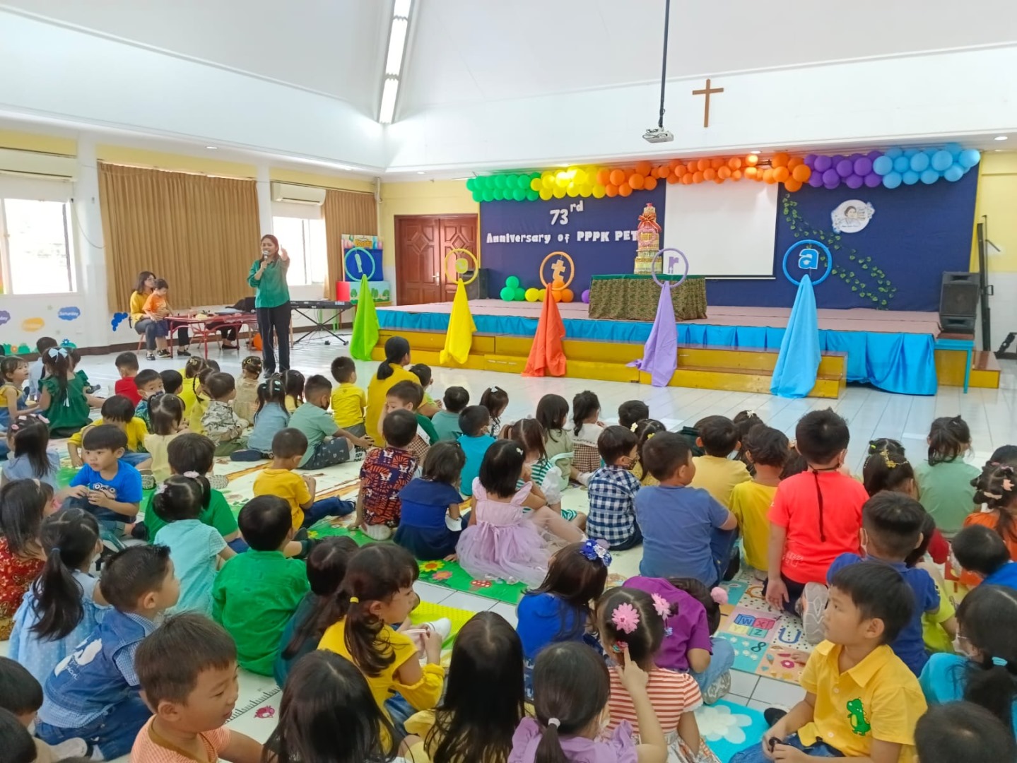 Happy birthday, Petra… Happy birthday Petra! Begitu meriah lagu yang dinyanyikan para siswa-siswi, guru dan karyawan KB-TK Kristen Petra