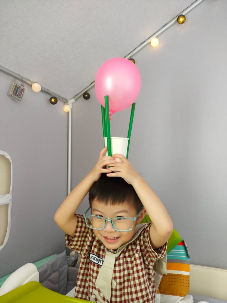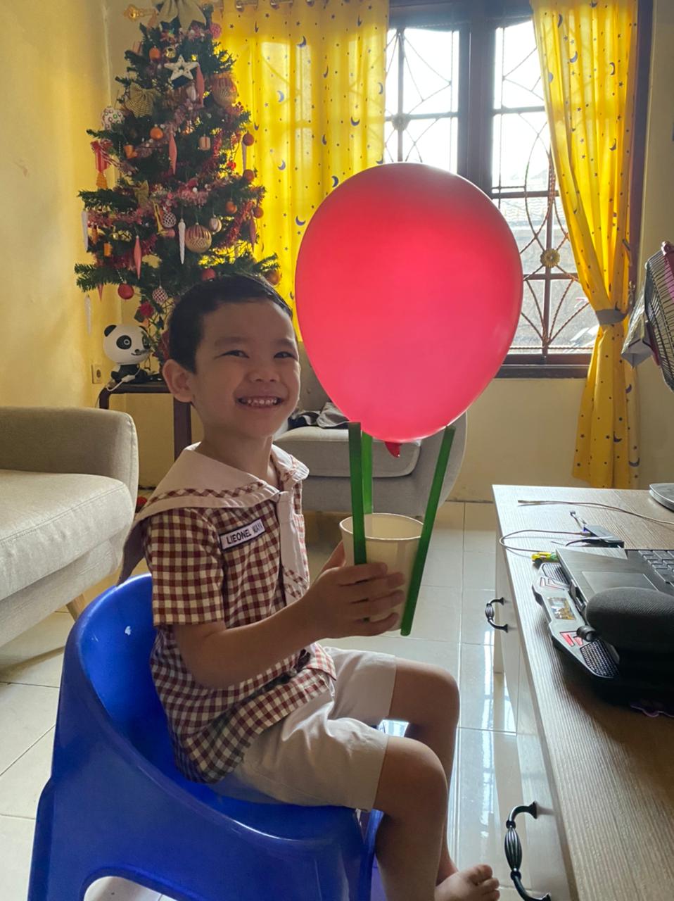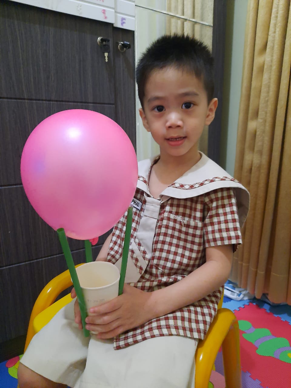 Hari Jumat, 22 Januari 2021 lalu, anak kelompok B dari KB Kristen Petra 13 asyik membuat mainan balon udara. Dengan tema kegiatan: kendaraan udara, maka kami membuat balon udara. Bahannya cukup sederhana lho, antara lain balon, sedotan, dan paper cup serta lem. Cara membuatnya cukup mudah. Pertama, paper cup-nya dipakai menjadi tempat penumpang duduk dan sedotannya menjadi penyangga balon udara. Kedua, minta bantuan mama untuk meniup balonnya, karena kami masih belum bisa meniup balon menjadi ukuran yang besar. Yang terakhir, tentu bantuan Ibu guru yang membimbing kami lewat tayangan video dan pertemuan di online class.