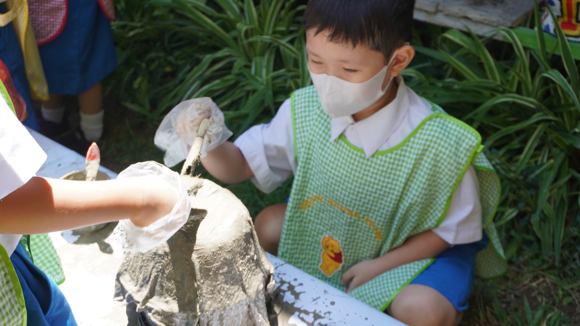 Hari berikutnya kami lapisi kembali dengan adonan semen supaya lebih kuat, dan dijemur dibawah sinar matari yang sangat panas. Ketika sudah kering, mulailah kami menghias dengan cat sesuai dengan kreasi kelompok kami.