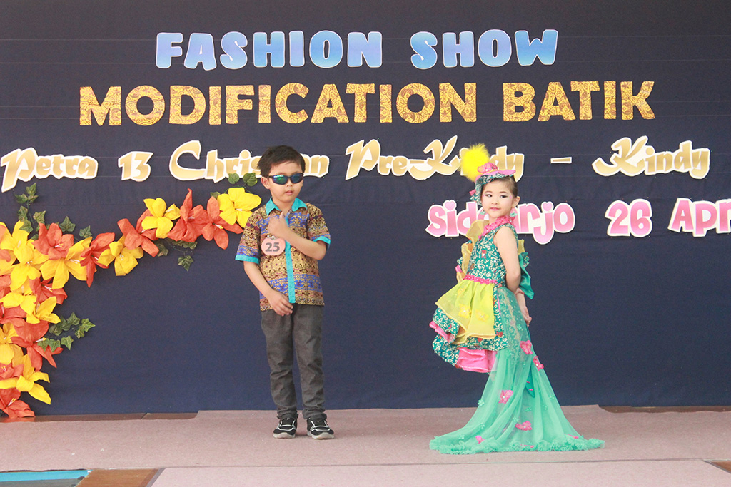 Hari ini, Jumat, 26 April 2019 KB-TK Kristen Petra 13 cukup berbeda dari biasanya. Hampir seluruh siswa-siswi KB dan TK berbusana batik dengan berbagai warna yang indah. Ternyata sekolah ini sedang menyelenggarakan fashion show modification batik dalam rangka memperingati hari Kartini. Penampilan mereka sangat lucu-lucu dan menggemaskan.