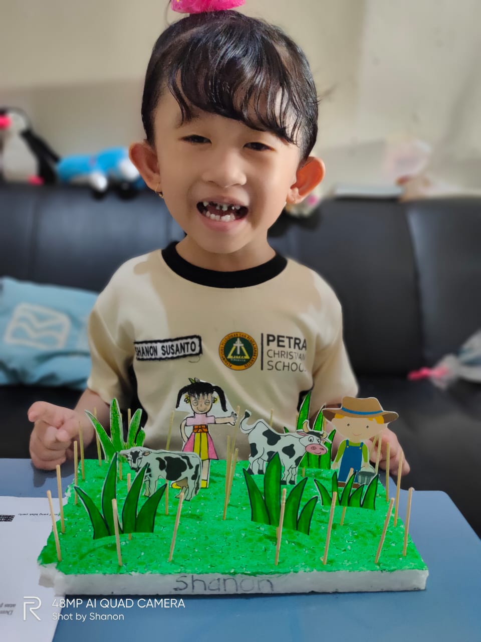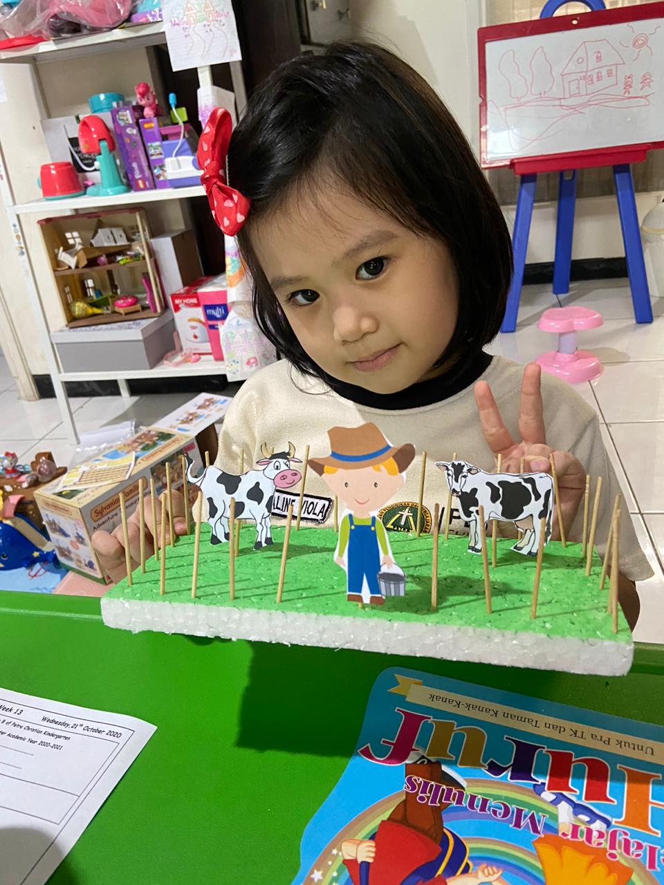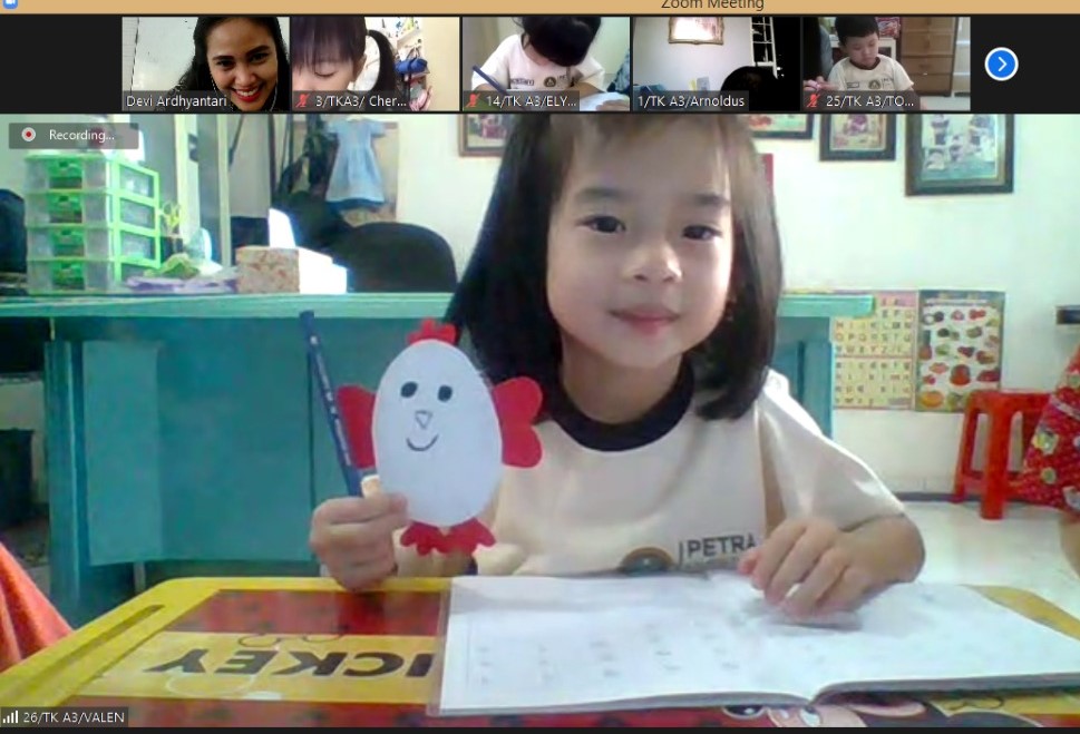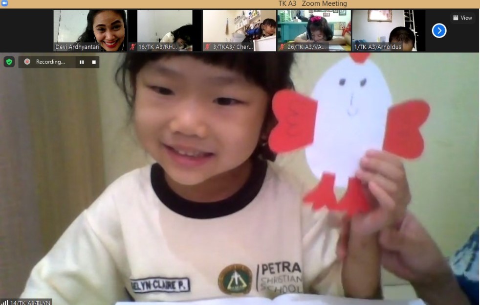 Hari Rabu, 21 Oktober 2020 yang lalu, kami Kelompok A dan B dari TK Kristen Petra 13 belajar mengenal binatang ternak. Ibu guru mengajak kami menyanyikan lagu Old MacDonald dengan gembira. Setelah itu, ibu guru menjelaskan dan mengenalkan berbagai macam binatang ternak melalui gambar dan tayangan video yang kami saksikan lewat layar zoom. Karena sekarang masih dalam masa pandemi, kami mengikuti kegiatan sekolah dari rumah secara online. Walaupun hanya melalui layar, kami tetap dapat saling bertegur sapa satu dengan guru dan teman-teman. Kami dapat melihat hal baru yang disajikan dengan menarik oleh guru, supaya kami tetap bersemangat mengikuti kegiatan pembelajaran dari rumah.