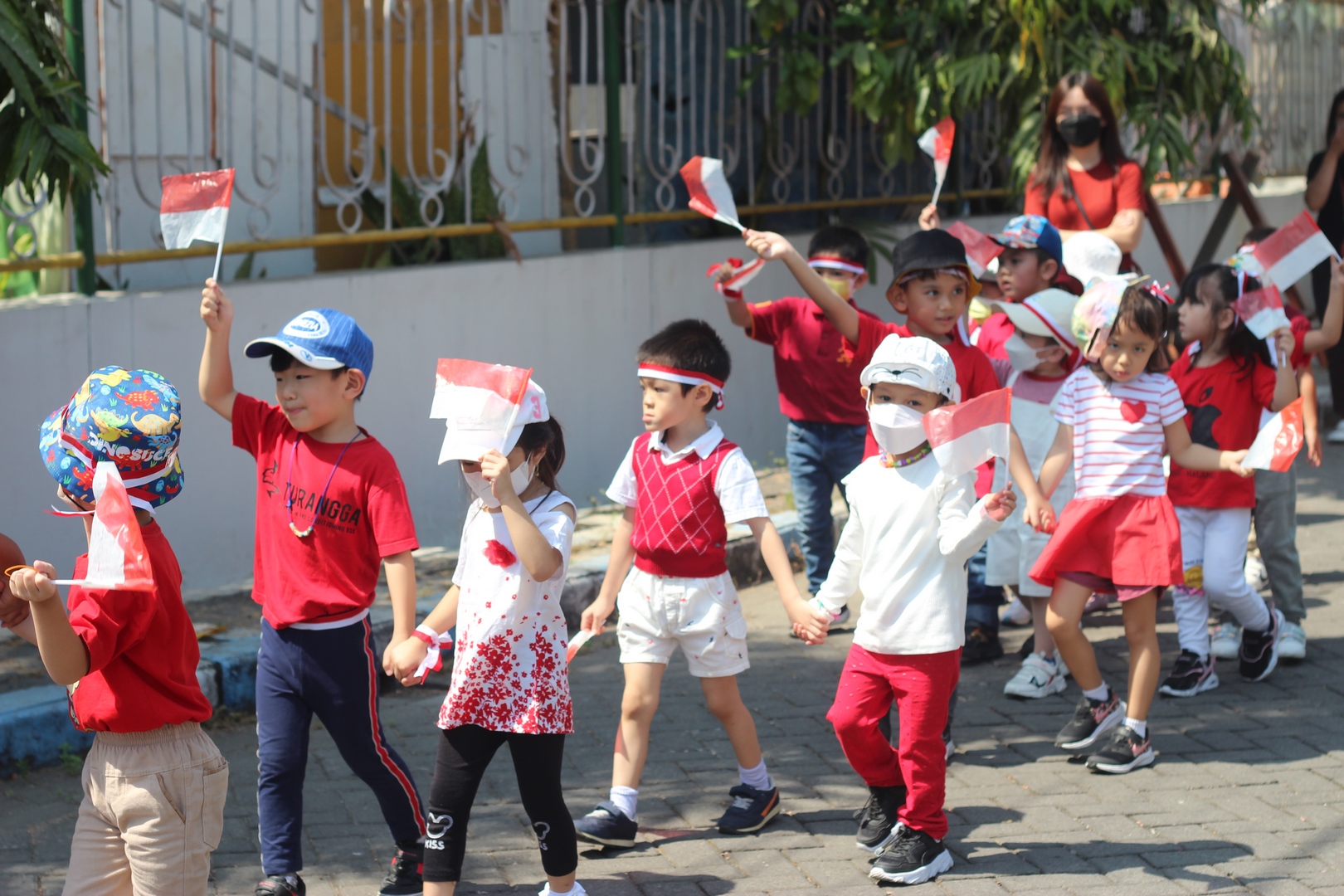 Hari Jumat tanggal 18 Agustus 2023 lalu, sekolahku KB-TK Kristen Petra 13 merayakan HUT ke-78 Kemerdekaan Republik Indonesia. Acara hari ini diikuti oleh semua teman-teman dari kelas KB A, KBB, TK A hingga TK B. Kami memulai pagi ini dengan berdoa kemudian mengikuti senam Pelajar Pancasila dan menyanyikan lagu Hari Merdeka. ”Hari merdeka nusa dan bangsa, hari lahirnya Bangsa Indonesia.. Merdeka…” lagu tersebut kami nyanyikan dengan semangat dan lantang.