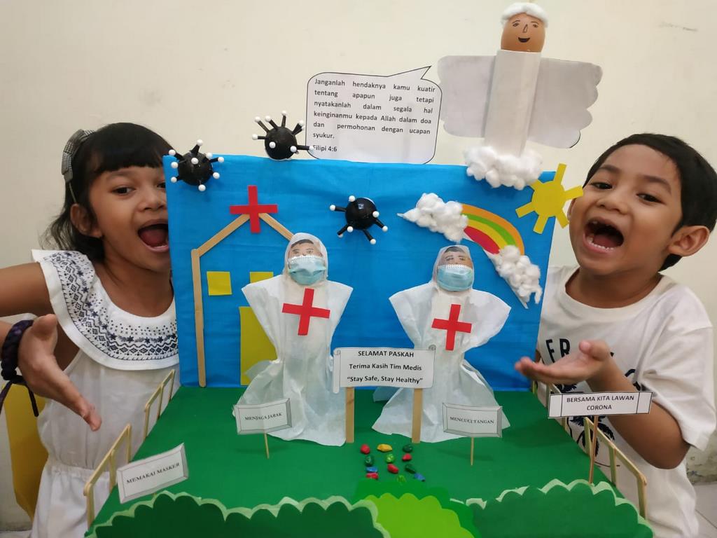 Ketika hari pengumuman tiba, hati saya berdebar-debar dan tidak sabar mendengar siapa saja pemenangnya. Saya berdoa dalam hati. “Tuhan, saya ingin menang, walau bukan juara 1, tapi saya ingin menang”. Akhirnya nama-nama para pemenang pun mulai disebutkan, dan Puji Tuhan, saya berhasil menjadi pemenang. Terima kasih Tuhan, mama dan papa telah membantu saya menyiapkan semuanya. Piala ini adalah milik kita bersama. Satu hal yang saya pelajari saat menghias telur adalah adanya sebuah kehidupan di dalam telur yang suatu saat nanti akan menetas. Demikian pula Tuhan Yesus, walau sudah mati di kayu salib dan dikuburkan, namun pada hari yang ke tiga Tuhan bangkit, hidup dan naik ke surga. Tuhan Yesus telah mengalahkan maut. Terima kasih Tuhan Yesus telah mati untuk saya dan kami semua.
