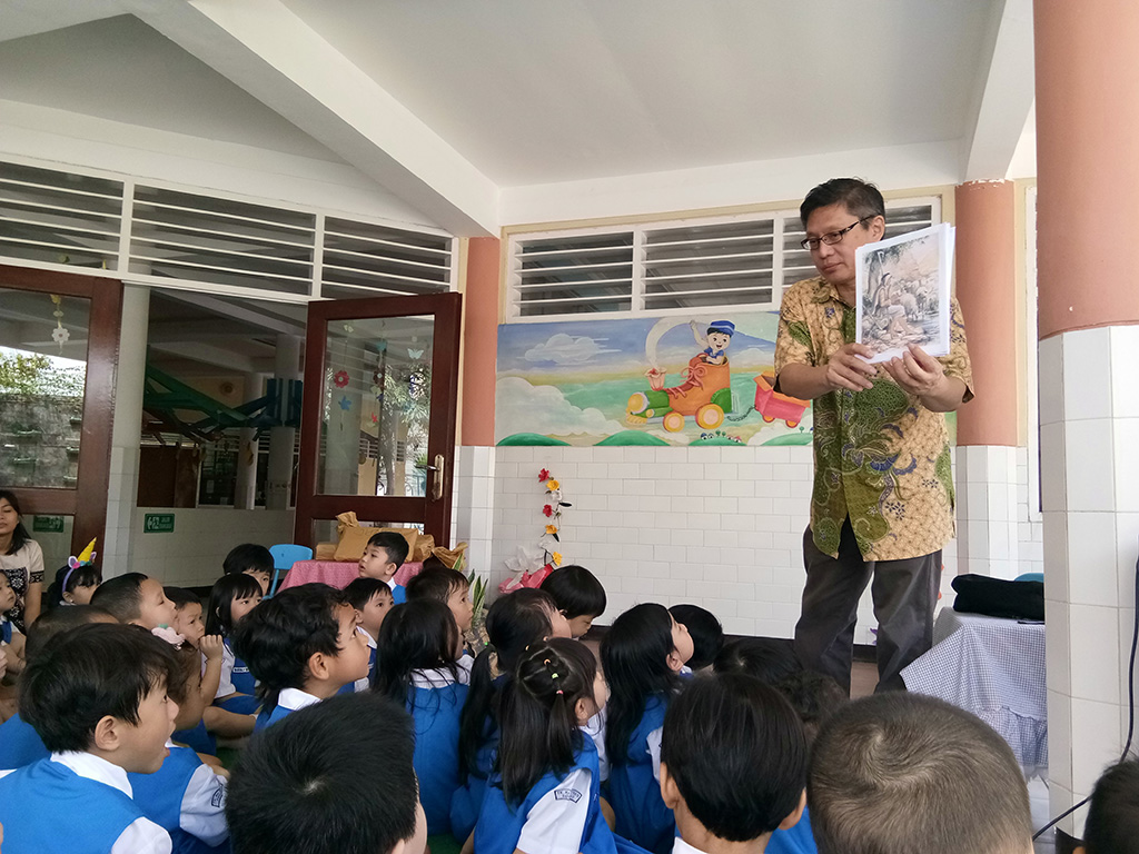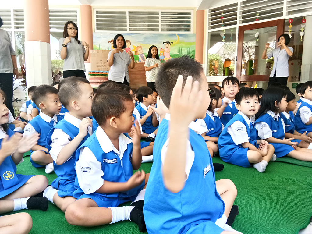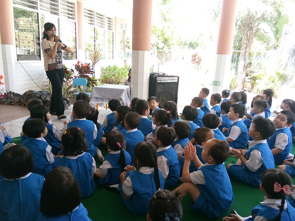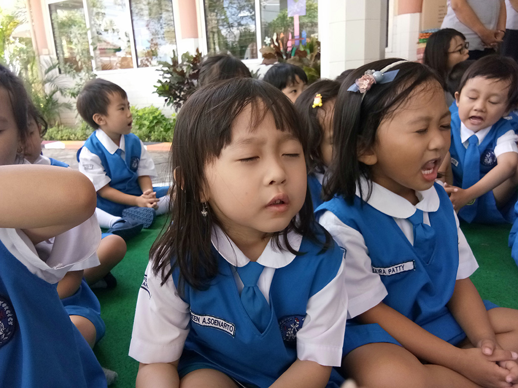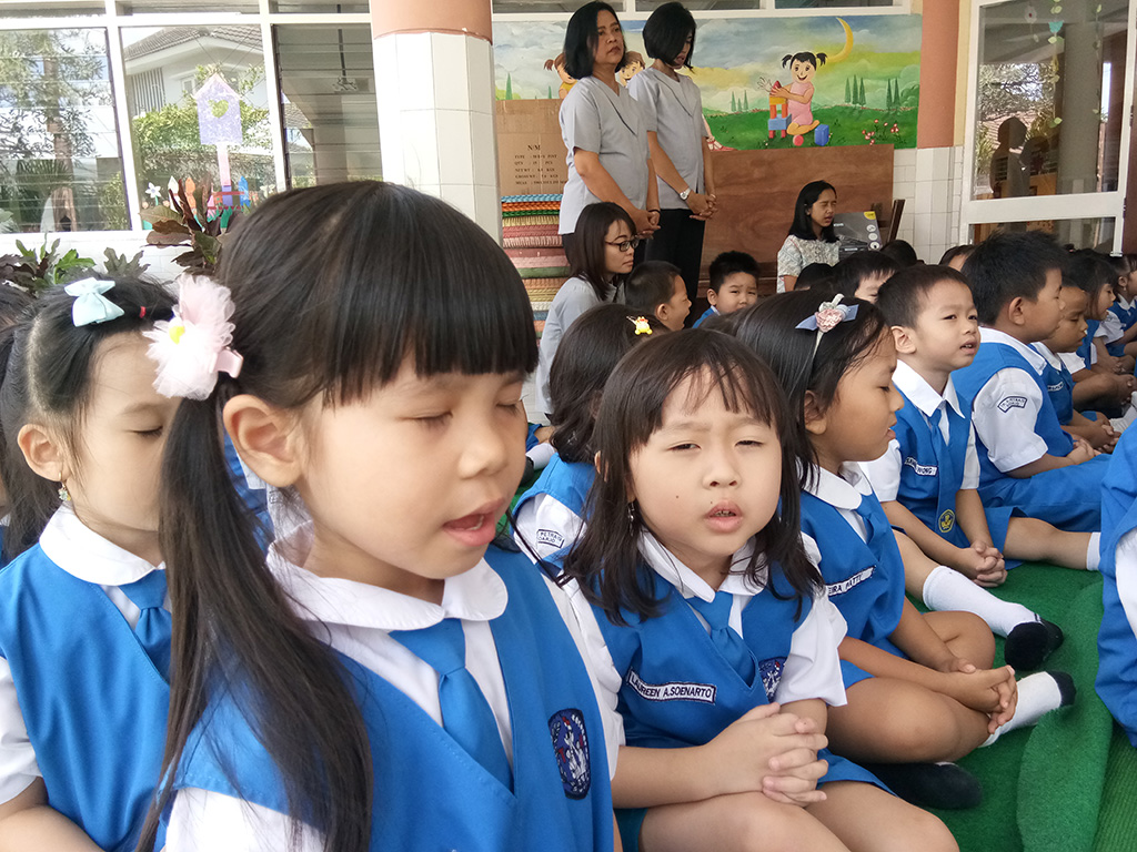 Hari ini Senin, 16 September 2019 kami para siswa-siswi kelompok A dari TK Kristen Petra 13 mengadakan kegiatan kebaktian padang di sekolah. Area yang kami gunakan adalah halaman belakang sekolah. Sambil memandang alam ciptaan Tuhan lewat bunga dan pohon-pohon yang tumbuh di sekitar sekolah kami bernyanyi memuji Tuhan serta mendengarkan firman Tuhan yang dibawakan oleh Pdt. Yosafat.