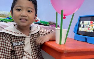 Hari Jumat, 22 Januari 2021 lalu, anak kelompok B dari KB Kristen Petra 13 asyik membuat mainan balon udara. Dengan tema kegiatan: kendaraan udara, maka kami membuat balon udara. Bahannya cukup sederhana lho, antara lain balon, sedotan, dan paper cup serta lem. Cara membuatnya cukup mudah. Pertama, paper cup-nya dipakai menjadi tempat penumpang duduk dan sedotannya menjadi penyangga