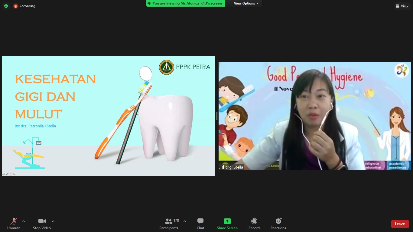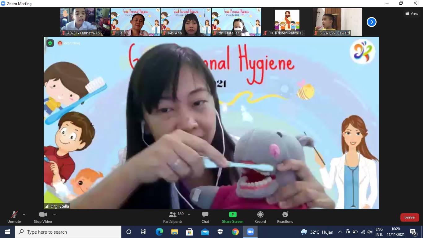 Kegiatan penyuluhan kesehatan di KB – TK Kristen Petra 13 dengan judul Good Personal Hygiene diselenggarakan pada hari Kamis, 11 November 2021 yang lalu diadakan untuk semua siswa KB – TK Kristen Petra 13. Kegiatan ini dipaparkan dokter UKS dan UKGS di sekolah.