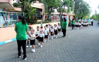 Priiittttttt…!!!! Siaaapppp!!!! Jalaaaannn!!!! Dengan lantang ibu guru menyiapkan barisan kami untuk mengikuti jalan sehat bersama. Hari ini Jumat, 17 Mei 2019 kami mengikuti kegiatan jalan sehat menyusuri perumahan sekitar Pondok Candra Indah. Kegiatan ini diiikuti oleh seluruh siswa-siswi KB dan TK Kristen Petra 13. Mereka berjalan kaki dengan penuh semangat. Walau udara cukup hangat dan jarak yang ditempuh cukup panjang, namun karena dilakukan bersama-sama, mereka tetap tersenyum dan semangat berjalan kaki hingga