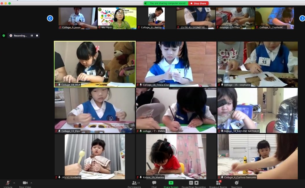 Sedangkan hari kedua adalah pelaksanaan lomba-lomba yang dibagi dalam 3 kategori usia. Ada coloring competition, collage competition, dan stamp competition. Semua anak mengikuti lomba secara online. Khusus lomba kategori usia 4 tahun ke bawah didampingi oleh orang tua, tentunya kerja sama dengan anak juga menjadi salah satu penilaian bagi dewan juri ditambah presentasi hasil karya khusus bagi collage competition dan stamp competition.