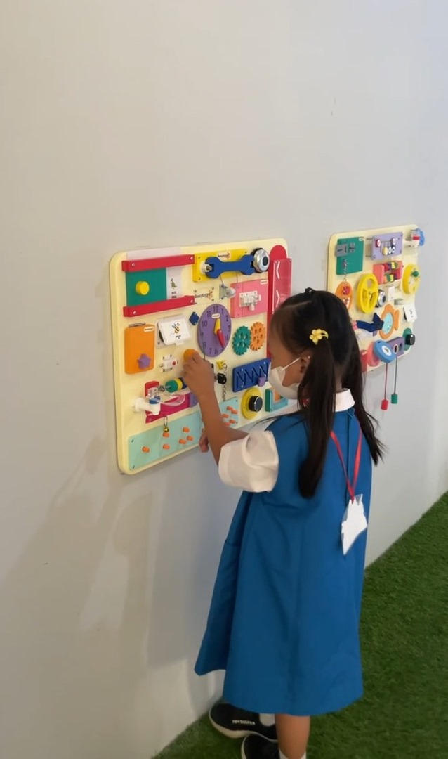 Ternyata di sekolah kami ada banyak kelas, dan aku dapat melihat teman-teman lain yang sedang bermain dan belajar di kelas mereka masing-masing. Kami juga dapat melihat serta berkenalan dengan guru-guru yang ada di kelas-kelas tersebut. Di sekolah, kami juga memiliki banyak mainan di kelas atau bahkan di playground. Dengan semangat, kami langsung berlari ketika Bu Guru memperbolehkan kami untuk mencoba berbagai permainan yang ada di Playground.