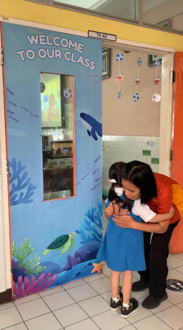 Setelah tiba di sekolah, aku disambut dengan hangat oleh guru-guru di depan maupun dalam kelas, aku juga melihat banyak sekali teman-teman yang datang dan diantar oleh papa dan mama mereka.