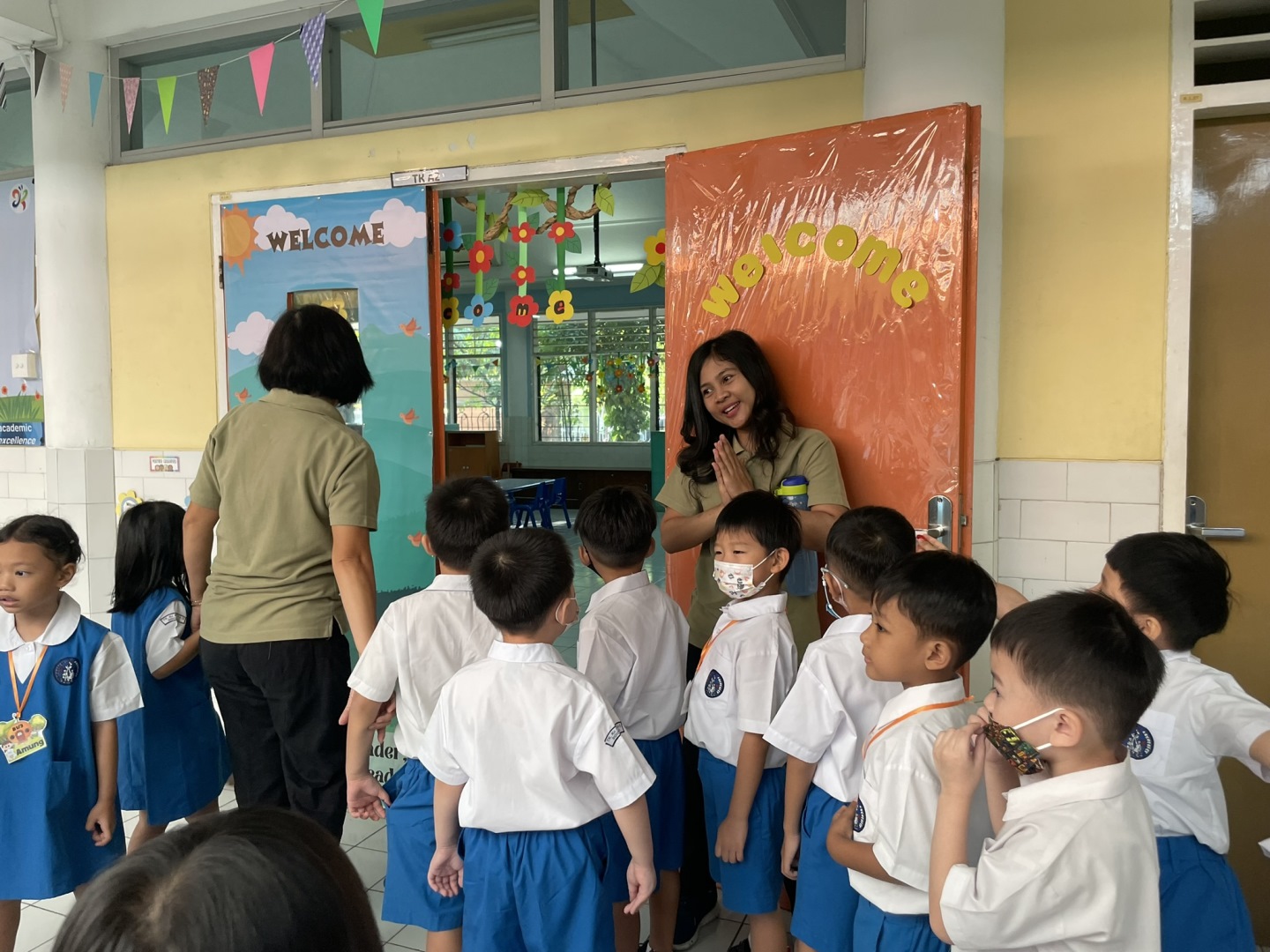 Sebelum kelas dimulai, Bu Guru mengajak kami untuk berbaris di depan kelas, kemudian secara bergiliran kami mengucapkan salam kepada Bu Guru dan dipersilakan untuk masuk kelas. Kami diajak untuk berdoa sebelum memulai kegiatan di hari itu, agar Tuhan memberkati seluruh aktivitas kami.