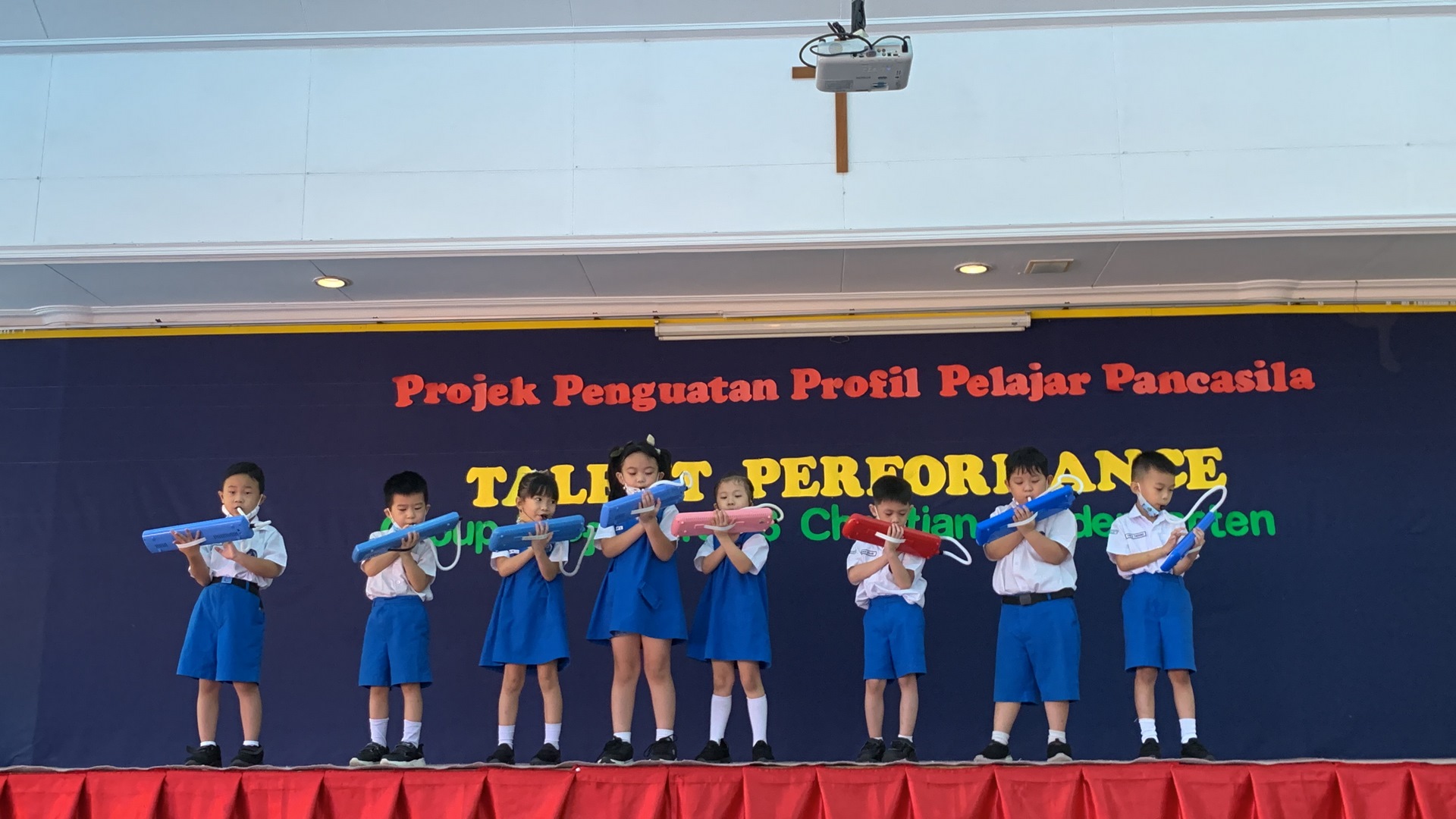 Halo teman-teman, senang sekali dapat bertemu kembali. Minggu ini, adalah minggu kelima atau minggu terakhir dari pelaksanaan Projek Penguatan Profil Pelajar Pancasila sebagai implementasi dari Kurikulum Merdeka yang dilaksanakan di sekolah kami. Pada semester 1 ini, projek kami mengambil tema Kita Semua Bersaudara. Karena itu, para siswa TK B menampilkan bakat yang kami miliki untuk dapat dilihat oleh guru dan teman-teman yang lain. Kegiatan ini bertujuan untuk mengenalkan bakat pada anak dan belajar untuk menghargai bakat orang lain, karena setiap orang memiliki bakat yang berbeda. Selain itu, kami juga belajar meningkatkan rasa percaya diri untuk berani tampil di atas panggung.